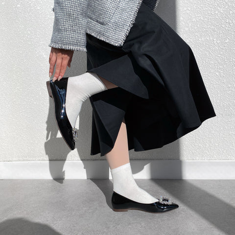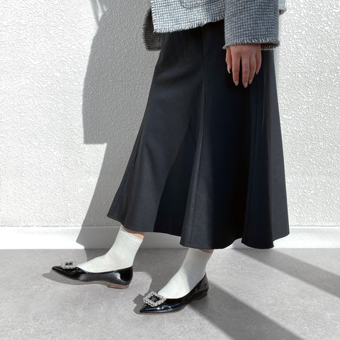 Flat shoes and ballet shoes that can be incorporated into a wide range of fashion coordination, such as rough, feminine, elegant, stylish, and casual. It doesn't make your legs look longer like high heels, but it can give you a natural look.